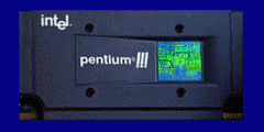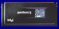 P Pro создавался, как процессор для серверов и рабочих станций (подобно нынешним P2 Xeon и P3 Xeon), имеет объединенный в одном корпусе кэш второго уровня объемом 256Кб (в августе 1997 г. появилась версия с 1Мб кэша второго уровня). Анонсирован в ноябре 1995 г., тактовая частота 150 MHz, 166 MHz, 180 MHz, 200 MHz, 0.35 мкм (150 MHz изготовлен по 0.6 мкм технологии), 5.5 млн транзисторов. Pentium P55 (Pentium MMX) Pentium MMX - версия Pentium с дополнительными возможностями. Технология MMX должна была добавить/расширить мультимедиа возможности компьютеров, но, IMHO, ощутимой пользы не принесла. Единственное приложение, где я увидел разницу, была игра "Tiger Shark" - несколько уменьшился размер пикселей, из которых состояла вода и добавился относительно качественный туман. P MMX объявлен в январе 1997 г., тактовая частота 166 MHz и 200 MHz, в июне того же года появилась 233 MHz версия. Технологический процесс 0.35 мкм, 4.5 млн транзисторов. Pentium II